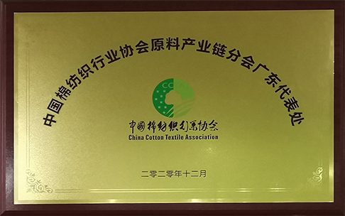 - 佛山市偉順實(shí)業(yè)有限公司被中國棉紡織行業(yè)協(xié)會(huì)原料產(chǎn)業(yè)鏈分會(huì)授予廣東代表處的企業(yè)榮譽(yù)。